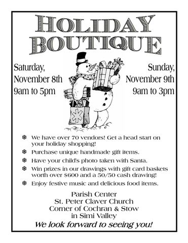 We, the parish family of Saint Peter Claver, are a Catholic faith community within the Archdiocese of Los Angeles and the Universal Church. Firm in the hope of the Gospel of Jesus Christ and inspired by the example of our patron, we proclaim the kingdom of God to embrace everyone in love without discrimination of any kind. We are devoted to worship, to witness, and joyful service in the Spirit.