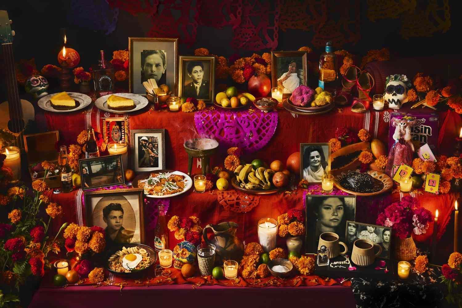 Algunas tradiciones del Día de los Muertos son crear un altar llamado ofrenda que incluye imágenes de seres queridos que han muerto, comidas y bebidas que les gustaron, velas y cempasúchil.
